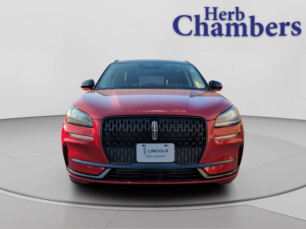 All Wheel Drive, Navigation, Remote Engine Start, Onboard Communications System, Power Liftgate, Turbocharged, Satellite Radio, iPod/MP3 Input, Dual Zone A/C, Blind Spot Monitor, Lane Keeping Assist, Apple CarPlay®, Smart Device Integration, WiFi Hotspot, Brake Actuated Limited Slip Differential. Rear Spoiler, Privacy Glass, Child Safety Locks, Steering Wheel Controls, Electronic Stability Control. 2025 Lincoln Corsair with Red Carpet Metallic Tinted Clearcoat exterior and Ebony interior features a 4 Cylinder Engine with 250 HP at 5500 RPM*. CARFAX 1-Owner