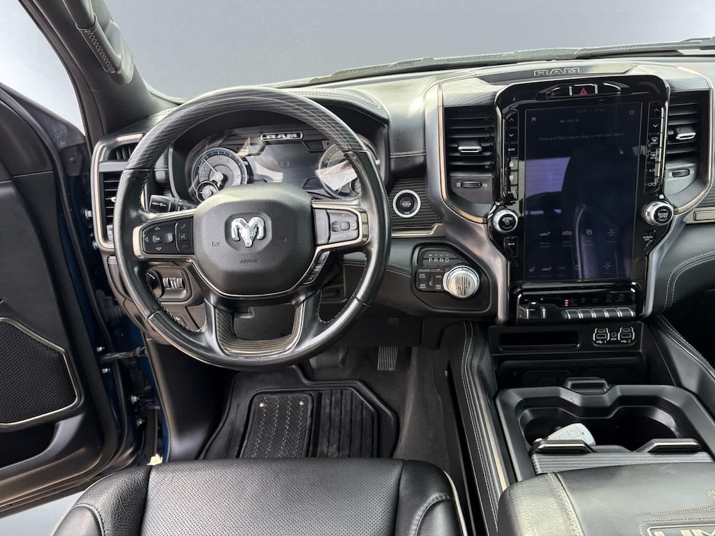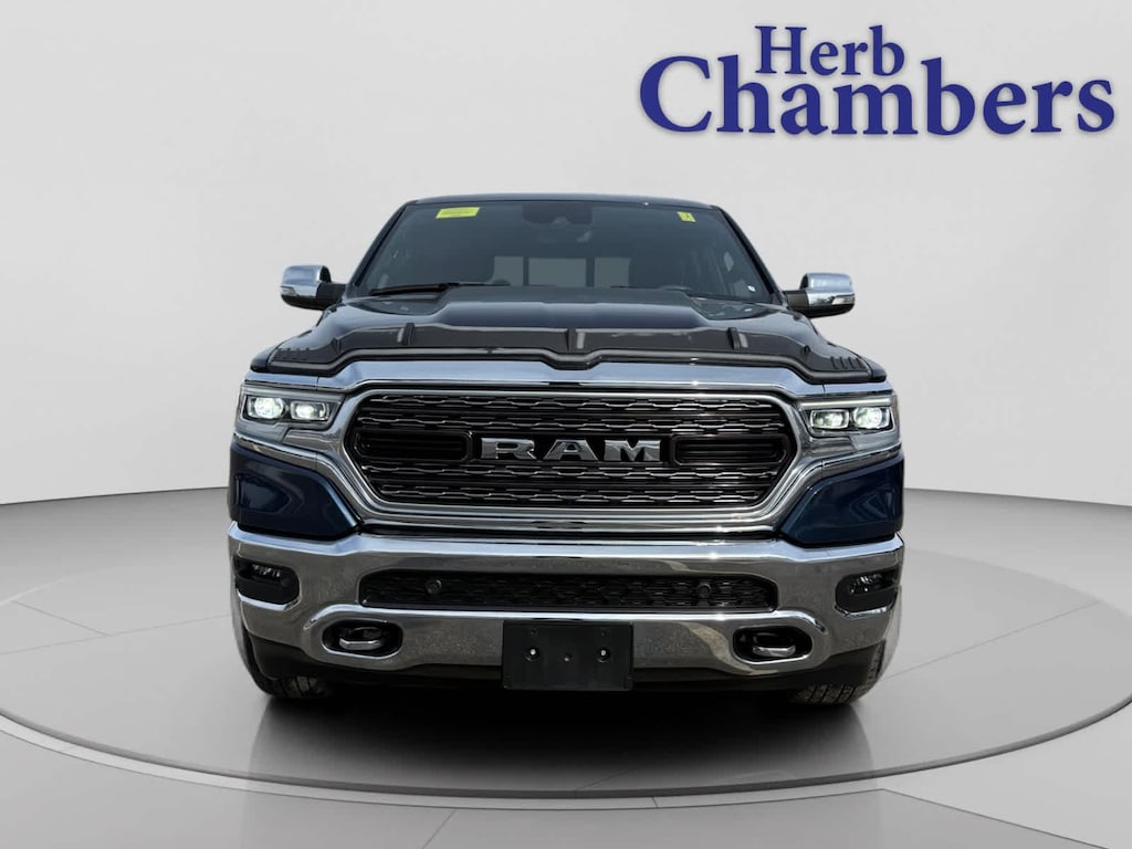 Leather Seats, Navigation, 4x4, Apple CarPlay®, Heated Driver Seat. Ram Limited with Patriot Blue Pearl Coat exterior and Black interior features a 8 Cylinder Engine with 395 HP at 5600 RPM*. CARFAX 1-Owner AutoCheck One Owner Was $46,888.